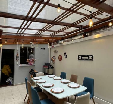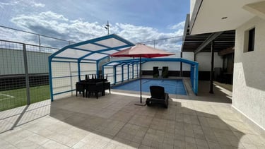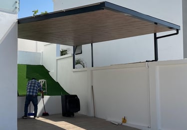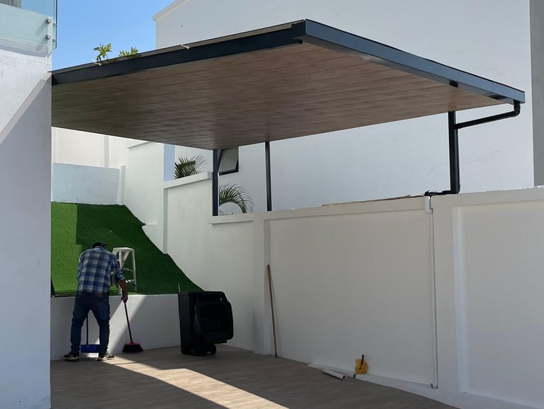 Proyecto en San Mateo - pérgola metálica con tumbado de PVC