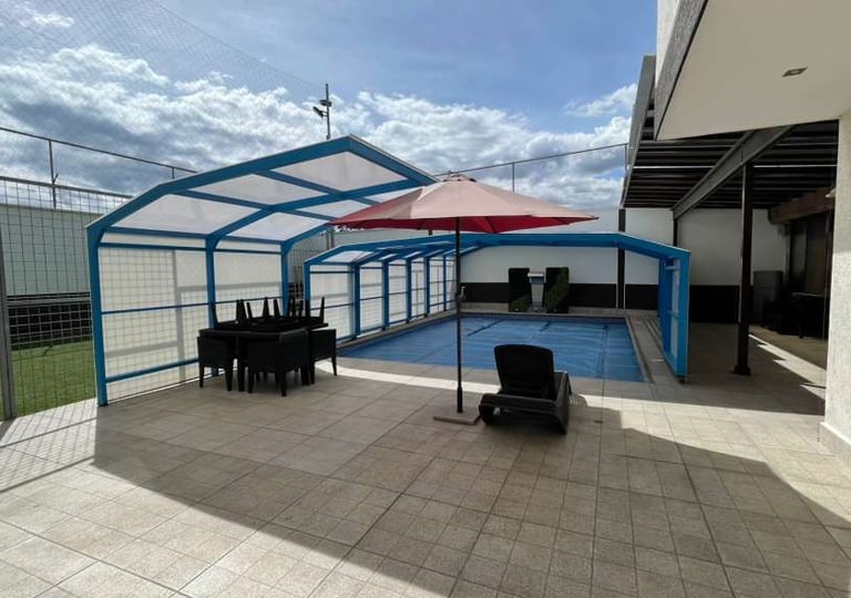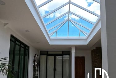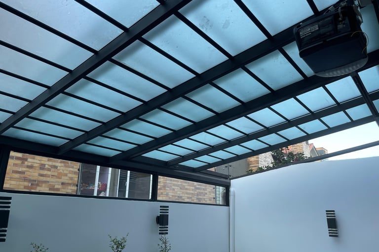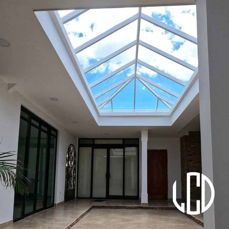 Proyecto en el triángulo Valle de los chillos - cubierta tipo pirámide corrediza motorizada en acero y vidrio templado