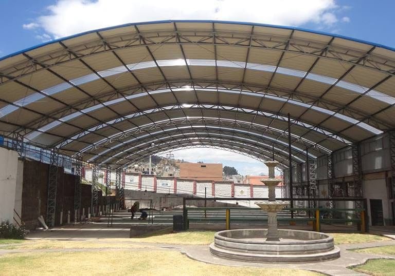 Proyecto en el Sur de Quito - Cubierta tipo arco de acero y policarbonato alveolar